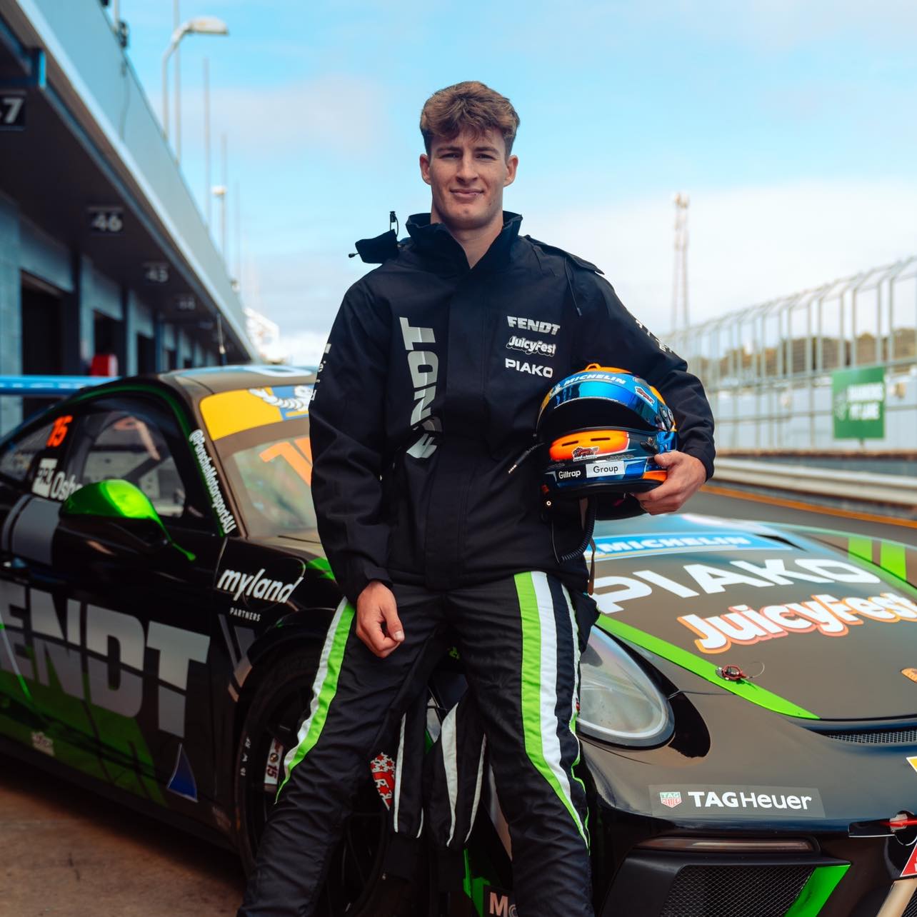 Clay Osbourne and his wade sponsored Porsche.